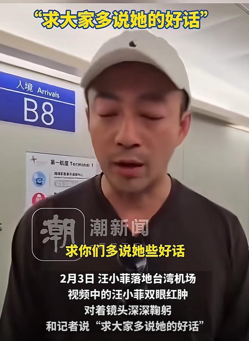 当他第一时间到达机场遇到记者说的第一句话就是“我求你们多说她一些好话”,看着的确让人心酸,眼睛红肿,画面里状态看起来也是很差。