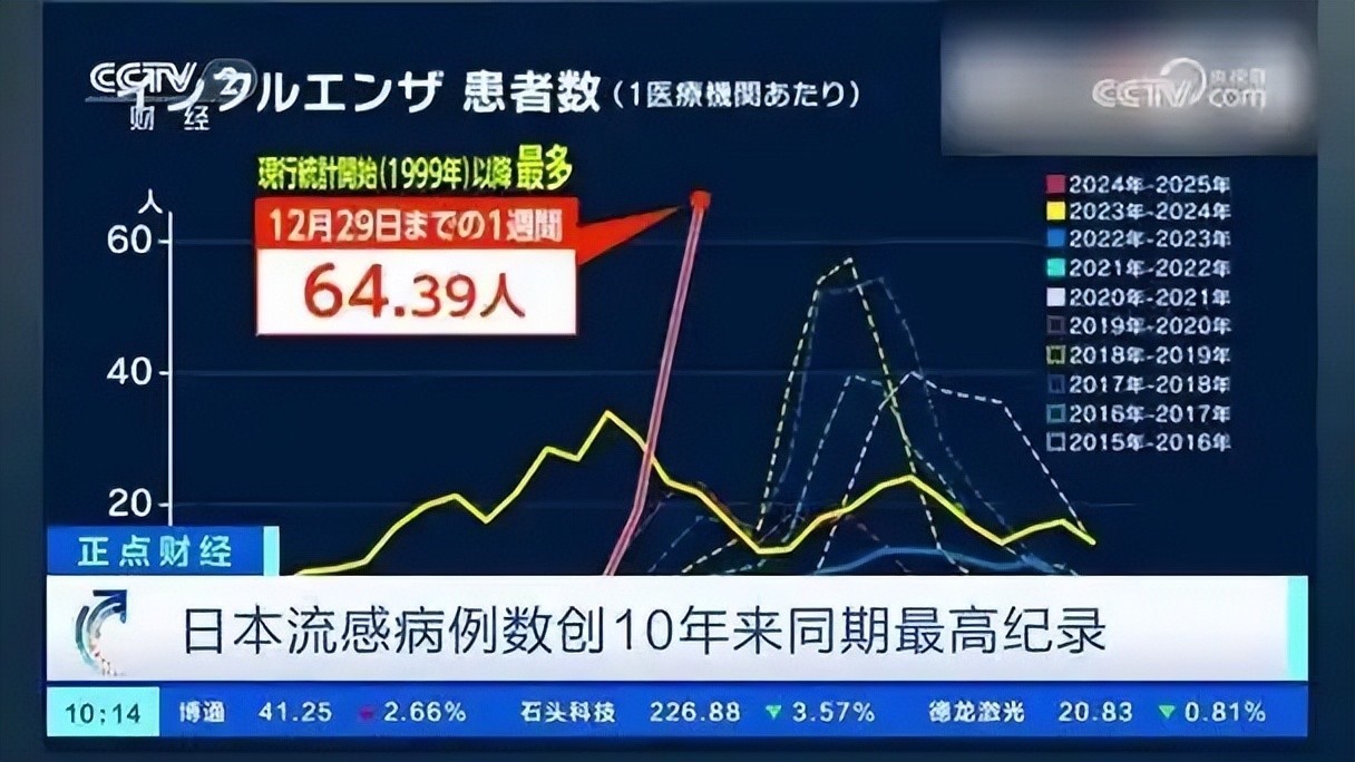 日本流感形势极为严峻,近月已达历史峰值,单周新增21万人。东京、大阪皆为重灾区,医院人满为患,民众就医甚至排不上队。